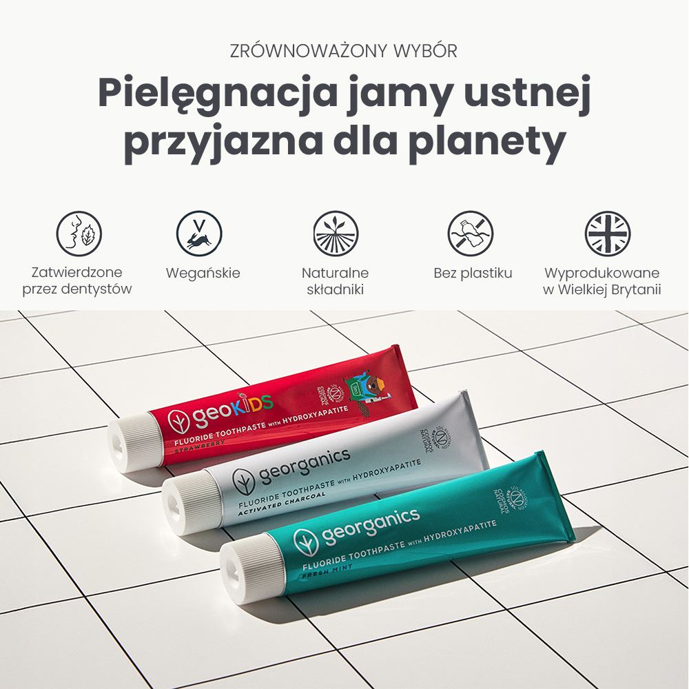 Georganics wykorzystuje hydroksyapatyt w swoich pastach do zębów, aby wzmocnić szkliwo, naprawić mikroubytki i zredukowa...